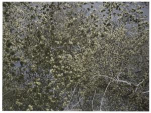Burns tomó las imágenes que componen la exposición en Montgiroux, Verrières le Buizon, St. Mesme, Ginebra y México durante esta primavera, lo que le permitió experimentar con el color. Al mezclar fotografía y plástica, las figuras geométricas rompen la perfección de la naturaleza creada mediante la composición original de las fotografías. Esta muestra, además, es prueba del compromiso medioambiental del artista.