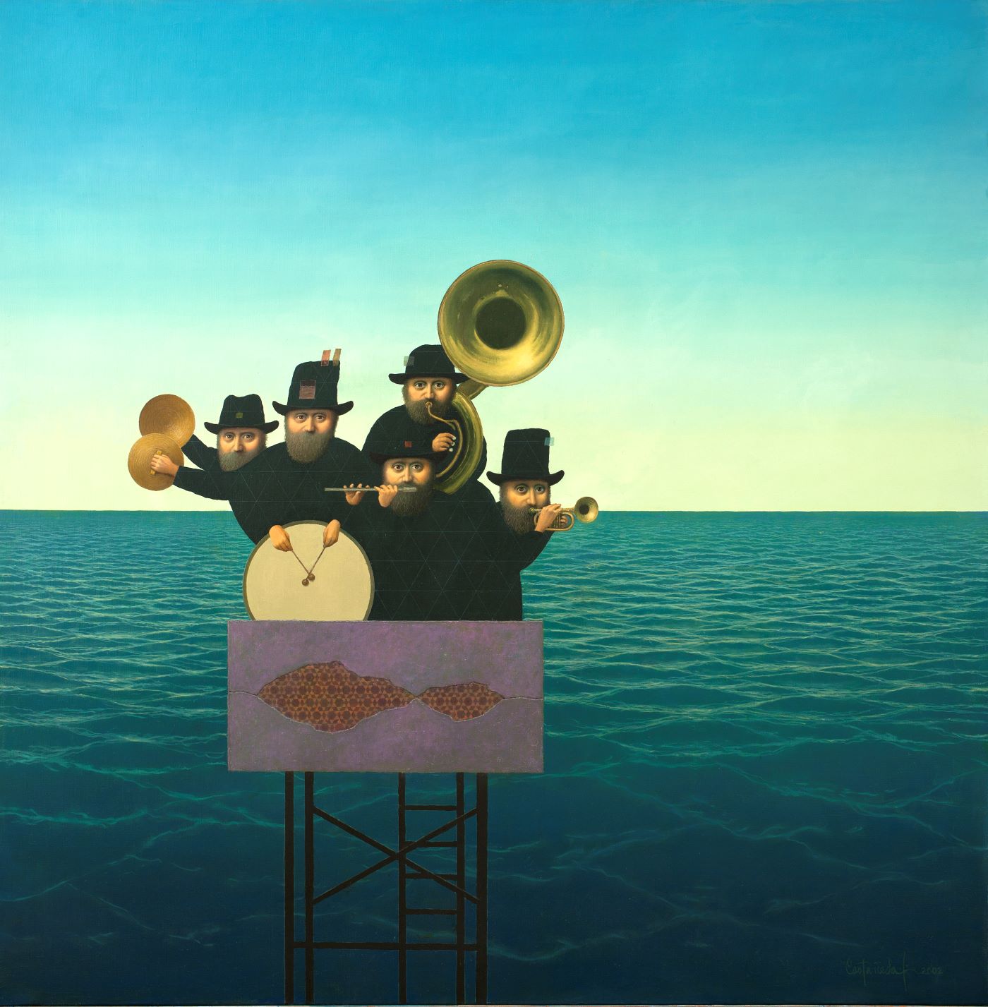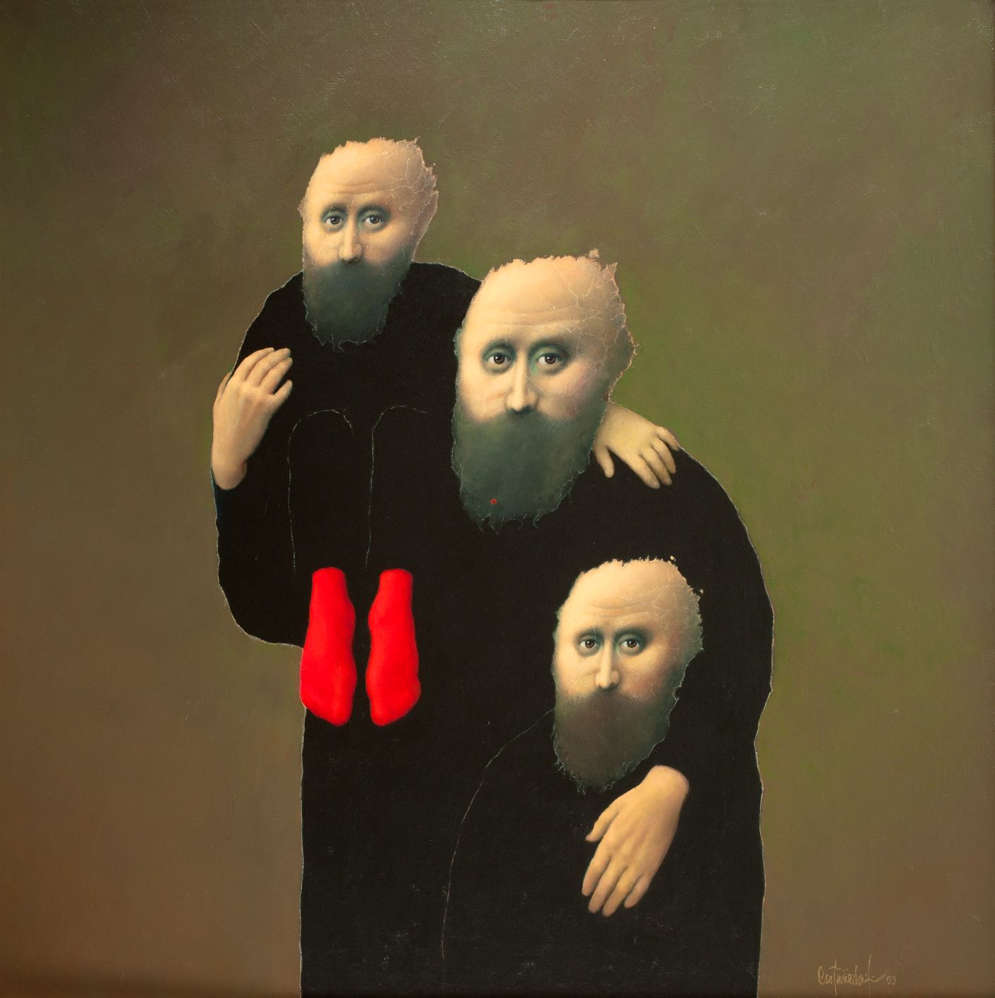 La pintura de Castañeda, como dijo Alberto Ruy Sánchez, habla de ese anhelo espiritual, de esa necesidad de emprender un viaje o de estar ya en él. Un viaje que se sabe lleno de obstáculos, de encuentros inesperados y nuevos retos. La búsqueda de un todo místico lo lleva a desear unirse con aquello que lo rebasa. El pintor se pinta a sí mismo, solo o multiplicado pero siempre frente a un vacío. Puede ser el mar, un campo inmenso o la nada. Entre él y ese vacío está la búsqueda y el camino hacia la posible revelación de una verdad que será necesaria e irónicamente fugaz.