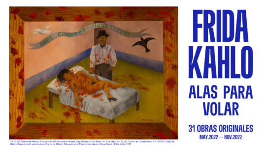 Frida Kahlo: alas para volar es una exposición centrada en la artista y su obra, no en el personaje. La muestra vuelve la mirada a la producción pictórica de Frida. Busca rescatar sus contribuciones a la historia de la pintura en dos aspectos fundamentales: la construcción del nacionalismo mexicano y el retrato del cuerpo femenino. A través de las 31 obras, 91 fotografías y una instalación con páginas de su diario, el visitante identificará dos importantes momentos durante la vida y carrera de Frida. El primero, en el que retrata a amigos, familiares y conocidos influenciada por la tradición europea y los movimientos artísticos del momento. Y el segundo, a raíz de su matrimonio con Diego Rivera en 1929, cuando incorpora elementos mexicanos a sus pinturas.