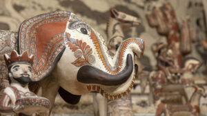 La intervención también incluye a Las reinas, una serie con 9 piezas de la colección Grandes maestros del arte popular, de Fomento Cultural Banamex, realizadas en el mismo pueblo por varias mujeres y talleres comunitarios.