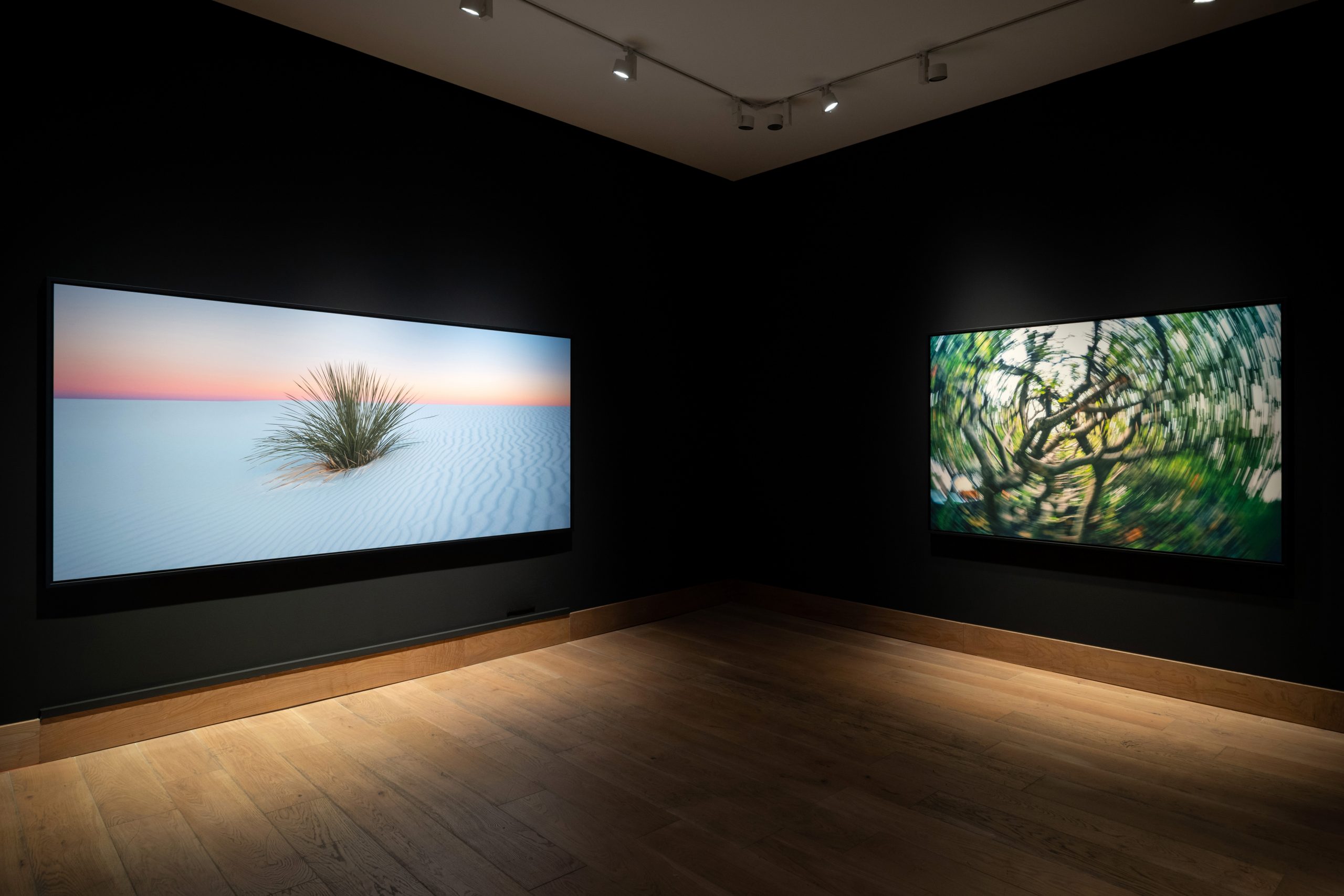 El segundo núcleo, una suerte de capilla oscura con cuatro inmensos paisajes donde sumergirse. Cada uno de ellos es el epítome estético de una de las últimas vivencias reveladoras de Soler-Roig en México, aquellas que han conseguido trasladarle hasta su epicentro interno: un impasse meditativo, un momento de celebración identitaria, un viaje espiritual mediado por la vegetación o por la sensación de unidad con el cosmos. Los horizontes de atmósferas mágicas y naturaleza en estado salvaje expresan la imbricación de las realidades físicas del entorno mexicano y la subjetividad del autor.