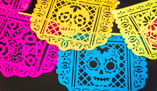 El papel picado artesanal es una de las tradiciones más coloridas de México, presente en todas las fiestas populares y, muy especialmente, en Día de Muertos. También las flores de Cempasúchil, de pétalos anaranjados, están presentes en todas las ofrendas de Día de Muertos.