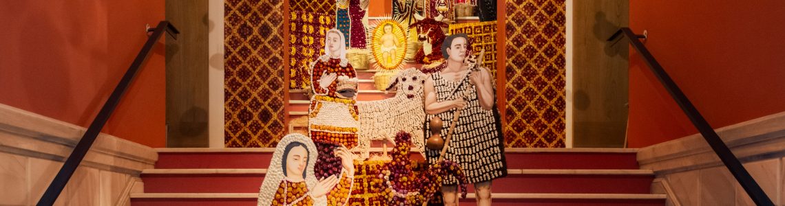 Fundación Casa de México en España en su misión de mostrar las tradiciones mexicanas al público español, presenta la navidad mexicana con un Nacimiento de gran formato elaborado a mano por maestros artesanos en el estado de Oaxaca en la técnica artesanal de flores inmortales. Se complementa con un árbol de navidad de gran tamaño (4 metros) con huajes grabados y esferas de hojalata repujada. La instalación está diseñada y conceptualizada por el reconocido diseñador mexicano, Ricardo Salas.