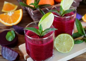 - Licuar la pulpa natural de maracuyá con la menta fresca y el azúcar.
