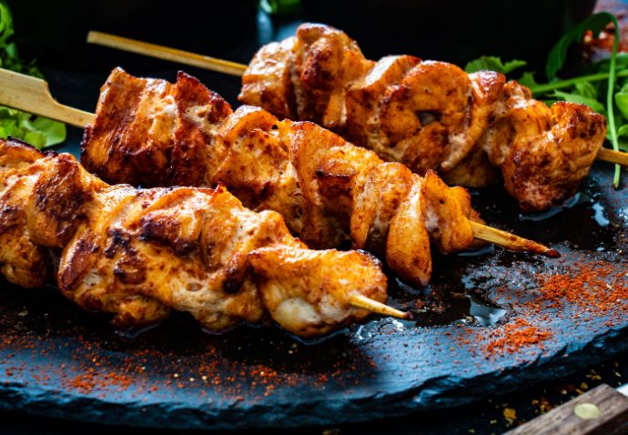 – Tomar las brochetas de pollo ya cocidas y bañalas en la salsa de tamarindo.
