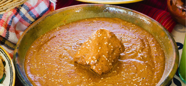 – Cortar en medallones y montar con el pipián, decorar con cilantro, granada y semillas de