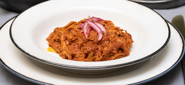 La cochinita pibil se cuece envuelta en hojas de plátano, que se pueden colocar debajo y encima de la carne.