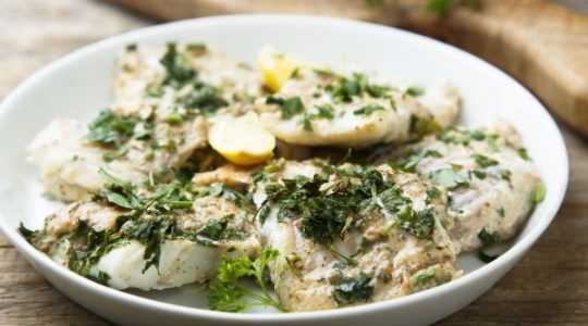 Agregar el pescado desmenuzado y el perejil picado. Una vez integrado, apagar el fuego. Calentar los frijoles refritos y las tortillas.