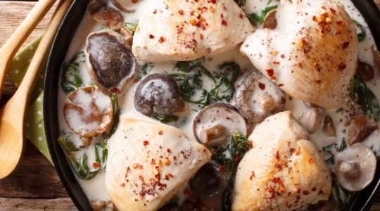 Integrar las setas o champiñones, bajar el fuego y tapar un poco hasta conseguir que de un hervor y retirar del fuego.