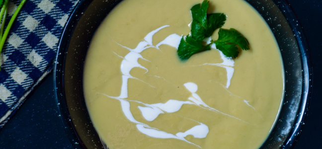 – Licuar los chiles, menos uno, con la mitad de la leche y el cilantro.